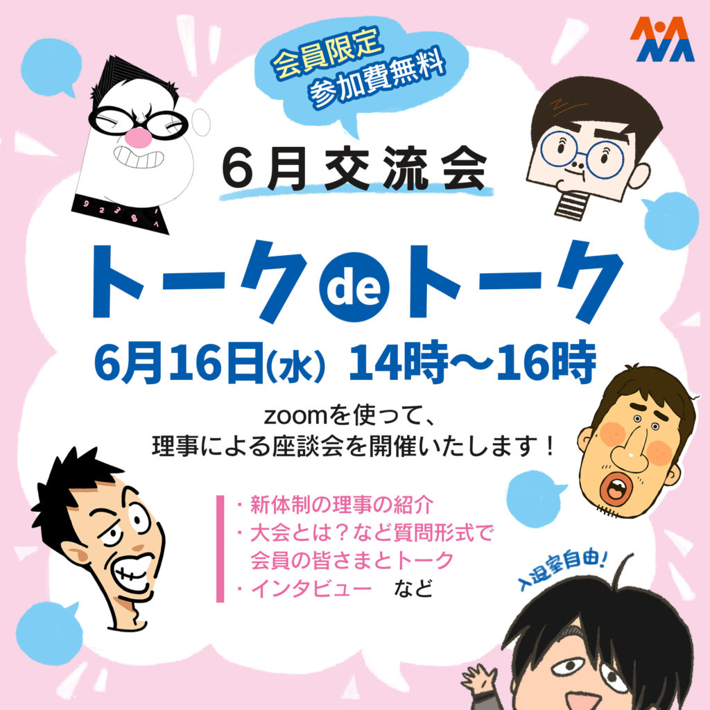 皆さま、こんにちは! 来月開催のJAPANミニコン〜オンライン〜に先立って、 6月交流会が決定いたしました! 6月16日(水)14時〜16時 zoomを使って、理事による『トークdeトーク』を開催いたします。 ・新体制の理事の紹介 ・そもそも大会とは?な... -